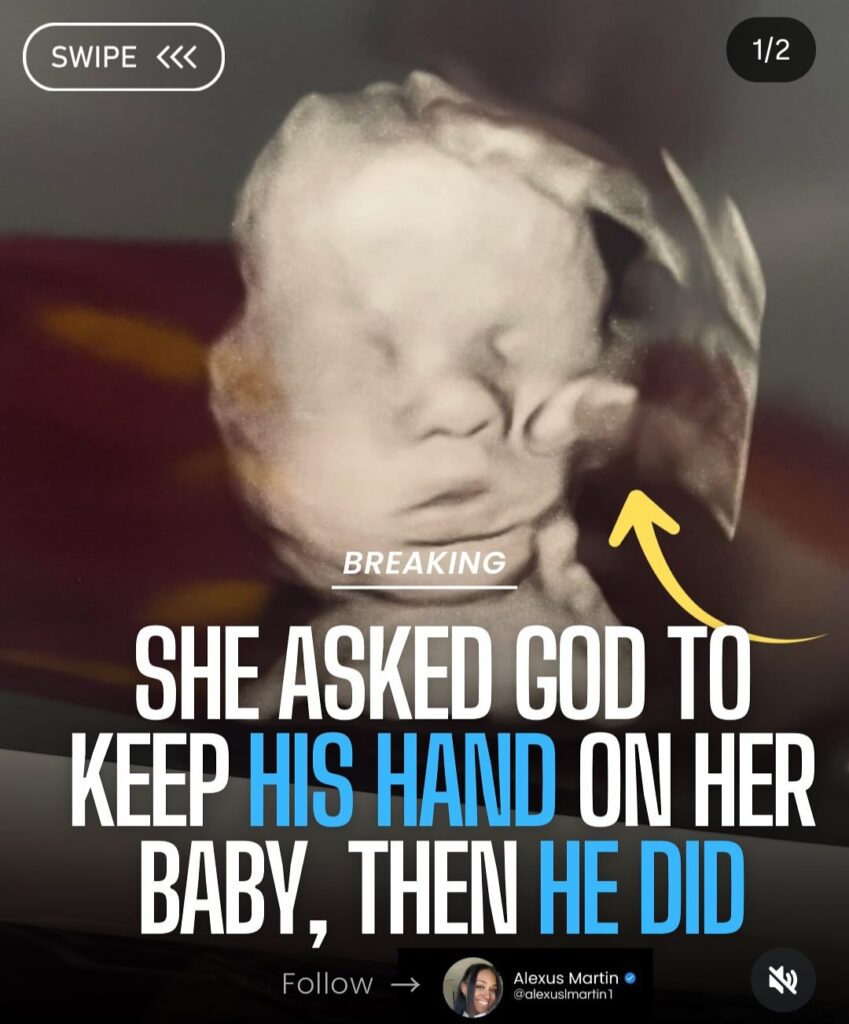 After having an ultrasound she discovered that there was quite literally a hand holding her baby’s head in the Ultrasound. The ultrasound actually showed this. It brought her to tears and gave her even stronger faith and more gratitude to God for answering her prayers.