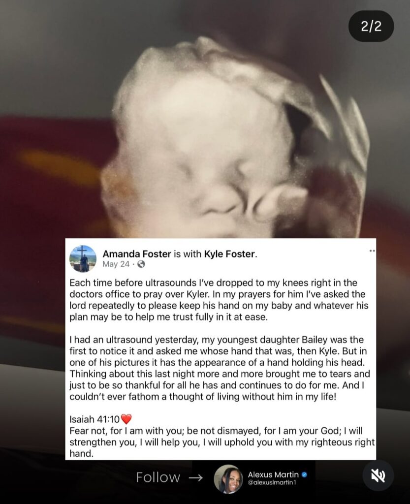 A pregnant woman by the name of Amanda Foster was pregnant in May and her prayer to God was very simple. It was that God would keep his hand on her baby during her pregnancy. She prayed this over and over and asked God to keep her at ease and trust during this process.